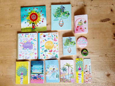 Elle s'est associée à Audrey Bussi qui travaillait déjà pour cette belle maison d’édition afin de donner naissance à sa collection de papeterie et accessoires.