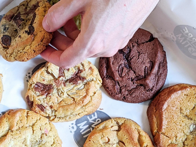 Afin de garantir des cookies 100 % made in France, nous nous fournissons auprès de producteurs locaux et Français (les farines des Moulins de Versailles, les chocolats Cacao Barry, le miel de la Plaine de Versailles, les pralines de la Maison Lyonnaise…) et choisissons avec soin des ingrédients de qualité. La production est réalisée dans un atelier Versaillais et selon un processus artisanal. Les cookies quant à eux sont fabriqués sans conservateur, moulés à la main par toute l’équipe et cuits sur place chaque matin sous les yeux de nos clients ravis d’avoir une bonne odeur de cookies chauds à chaque entrée en boutique !