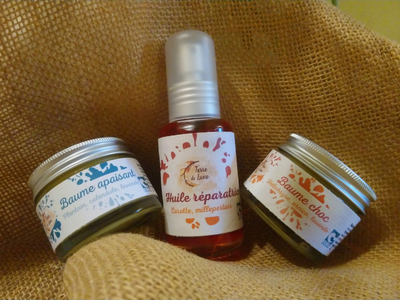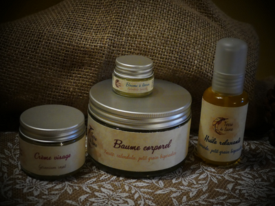 Je fabrique des baumes, crèmes et huiles pour la peau avec des ingrédients simples, composés de plantes et de matières premières issus de l'agriculture biologique. Mes contenants sont en verre. Mes produits se composent de cire d'abeille, de beurres, d'huiles végétales, de macérâts huileux et d'huiles essentielles. C'est tout :)!