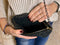 Sublimez n'importe quelle tenue avec la pochette de soirée Alice en coton recyclé noir relevé d'un fil or.