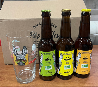 En complément, l’assortiment inclut un verre à bière de 33cl aux couleurs de la Brasserie des Pap'illes, pour savourer pleinement chaque bière.