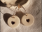 Une touche d'Or s'est ancrée sur ces petites pastilles de Faïence couleur crème de lait… Ces boucles d'oreilles sont chics et discrètes, poétiques et pleines de douceur...