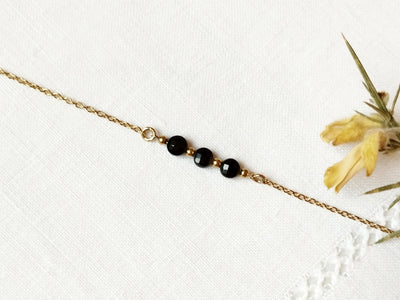 - Pierres naturelles au choix : blanche (agate blanche), noire (spinelle noire), OU sans pierre