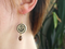 Boucles d'oreilles confectionnées avec des perles de papier issu d'un ancien livre, associées à des graines de févier d'Amérique ou de savonnier de Chine (récoltées et travaillées à Grenoble).