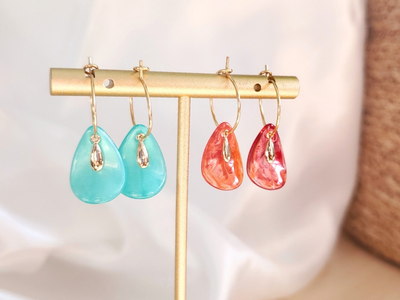 Intenses et raffinées, ces boucles d’oreilles pendantes dévoilent de délicats pétales en acrylique bleu sublimés par des finitions dorées à l’or fin.