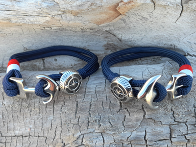Bracelet waterproof - Ancre et bouton en acier inoxydable - Nylon, acier inoxydable 316 L qualité médicale - Cordelette paracorde type micro 1.2 mm - Cordon paracorde type III 3.8 mm (bleu nuit) ou cordon ppm 4 mm couleur (ivoire) ou cordon paracorde type IV 4.2 MM (bleu cyan)
