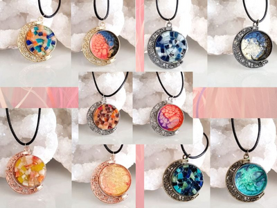 Un collier pendentif en version Bleu Univers ou Vert Nature.