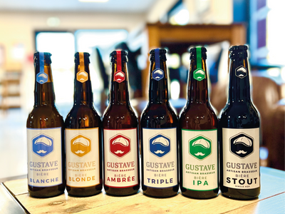 Bière dorée à la pétillance franche, offrant une mousse généreuse et saveur maltée biscuit. Arômes houblonnés de fleurs et d’agrumes accompagnés d’une note poivrée propre à Gustave.