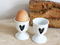 Coquetiers décorés à la main grâce à une technique ancienne de porcelainier.