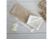 Ensemble dans les tons beiges à motifs étoiles blanches, blanc pour la collection Nougatine.