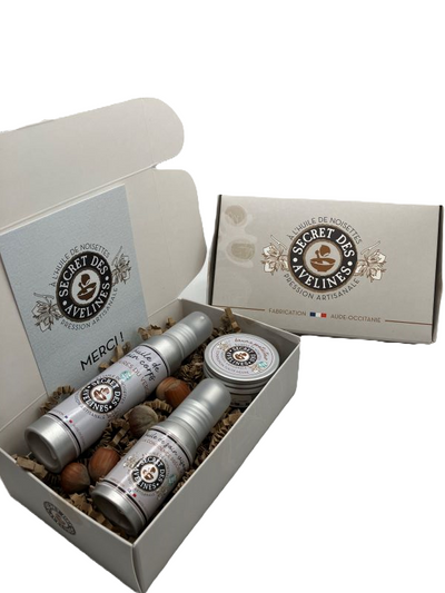En 2018, nous avons souhaité valoriser l’huile de noisettes de notre production par la création d’une marque « Secret des Avelines » et la fabrication dans notre laboratoire, d’une gamme de produits cosmétiques naturels.