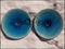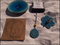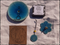 1 Porte-savon rond, avec trou et pied, émaillé de turquoise craquelé