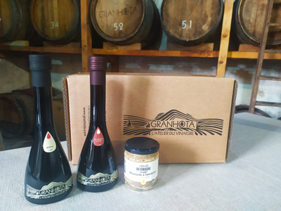 Granhota vous propose une gamme de vinaigres français artisanaux. Au sein de notre chai, nos vinaigres de vin sont transformés et vieillis en fût de chêne durant 18 mois. Nous élaborons également des vinaigres balsamiques 2 ans d'âge. 100% naturel, sans colorant, sans épaississant, sans sucre et sans caramel.