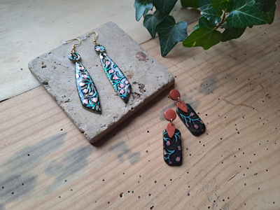 Chaque pièce est façonnée et assemblée à la main par la créatrice dans son atelier normand. Chaque ensemble comporte 3 formes de boucles d'oreilles structurées de dimensions différentes.
